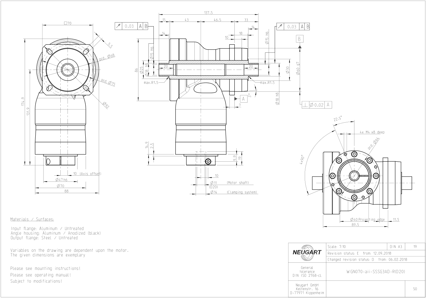 WGN hollow shaft angle planetary gearbox adopts hypoid gears, which are installed in the way of expanding and tightening force. The dimension drawing of WGN hollow shaft gearbox can be downloaded online, and the CAD drawing of selection can be downloaded online. The NCP selection software covers common motors and applications in the market. It can provide dynamic load data and load diagrams according to the application that does not need to be adapted. Provide free NCP software and technical guidance, you can contact for technical consultation.