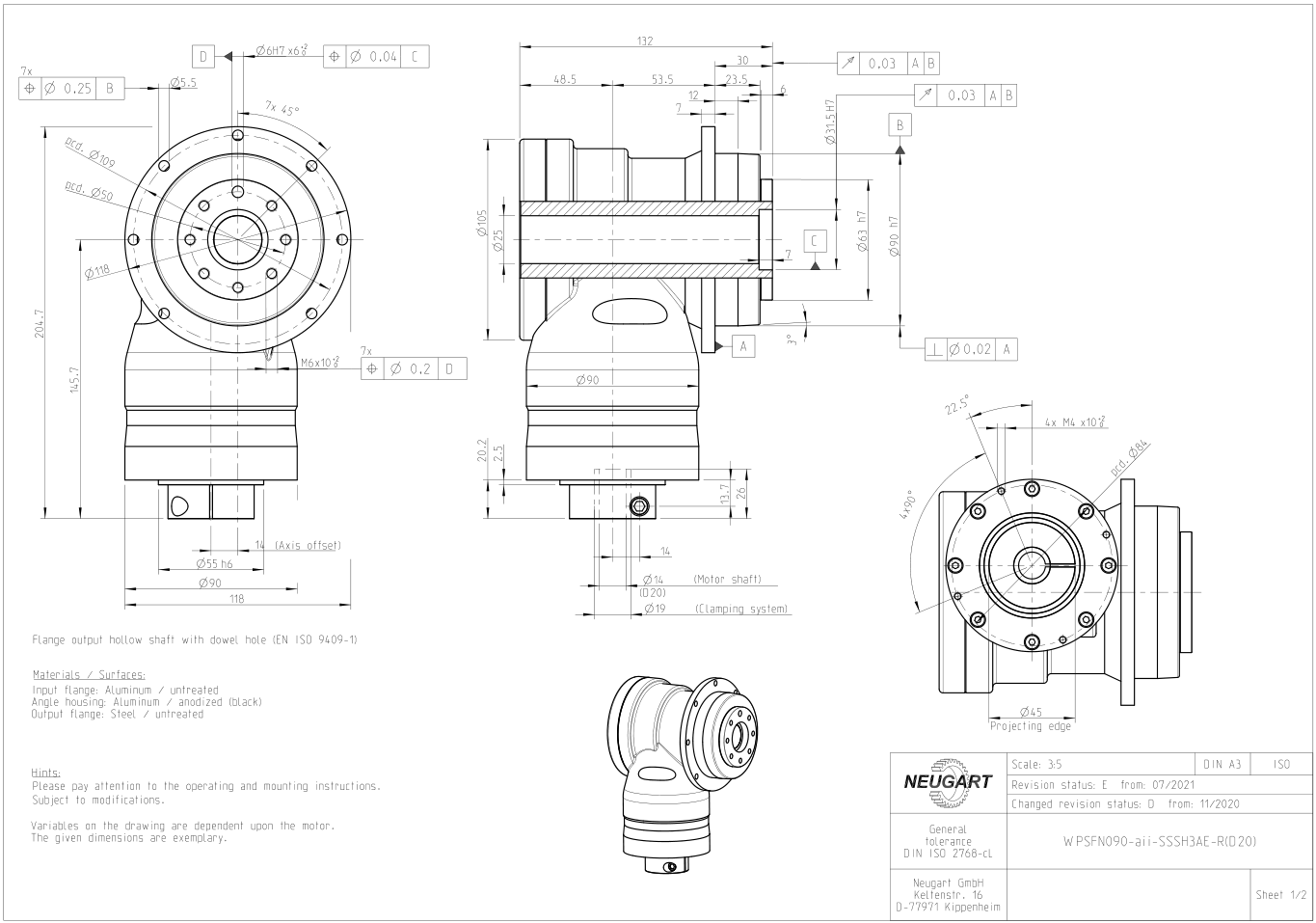 WPSFN is a NEUGART geared right-angle planetary gearbox with flanged output shaft and hollow shaft, which can be easily and quickly integrated into the system thanks to the standardized flange interface. The quality of the machined surface is achieved by optimizing the synchronizing function through the hypoid and helical planetary system. Download the drawings of the angular disc output planetary gearbox, download the model drawings of the full series of gearboxs, and download the drawings of the gearbox with different sizes and speed ratios.